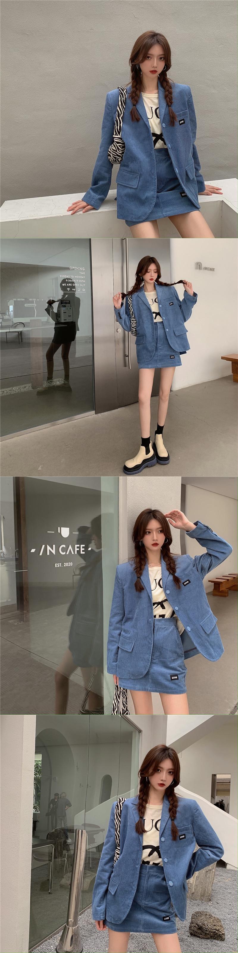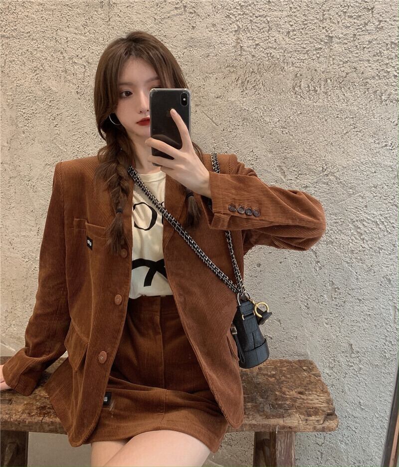 色:コーヒースーツ,青いスーツ,コーヒースカート,青いスカート