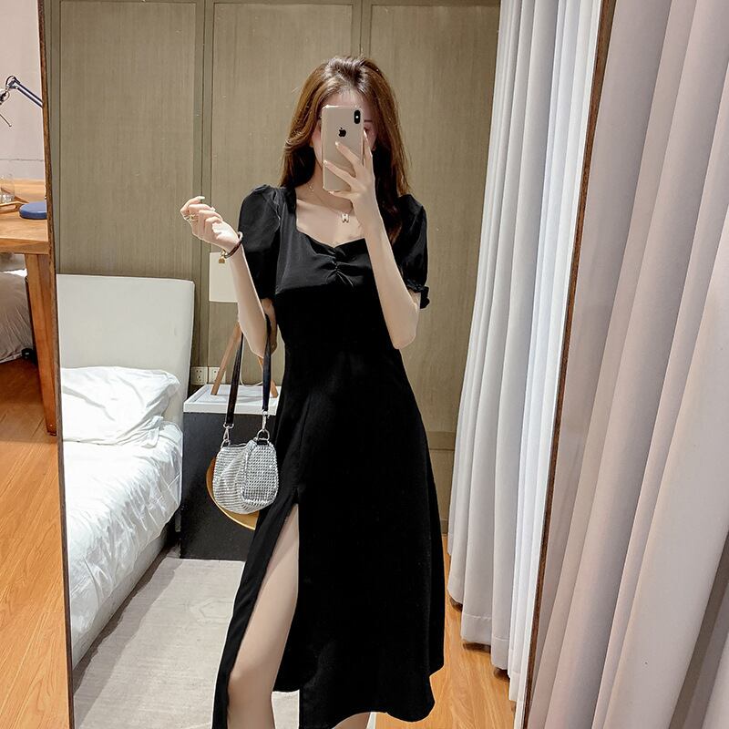ブラック 黒ドレス ワンピーススリーブ 袖 スカート スクウェア スクエア 女性 レディース フェミニン系26102762275