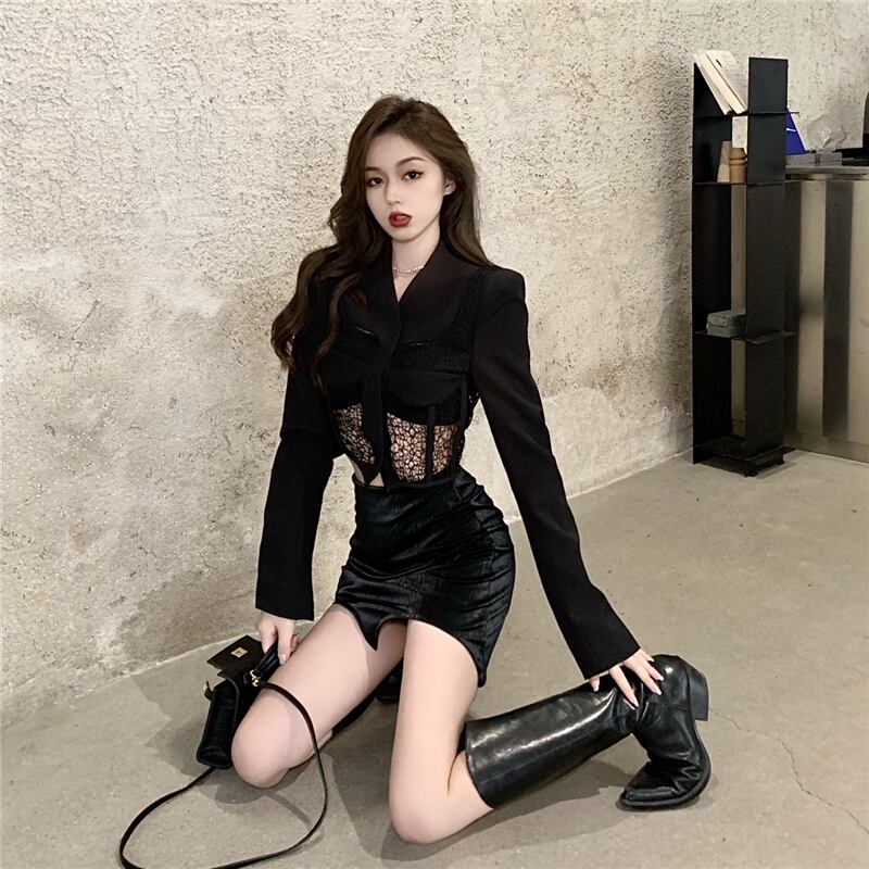 色:レースステッチスーツ,不規則なスカート