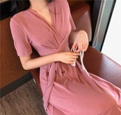 スタンダードVネックスカート ウエスト薄手スタイルロング マキシ ロング丈 マキシ丈ドレス ワンピース ショート ショート丈 ミニ ミニ丈 マキシロング丈 レトロ 女性 レディース フェミニン系73603074551