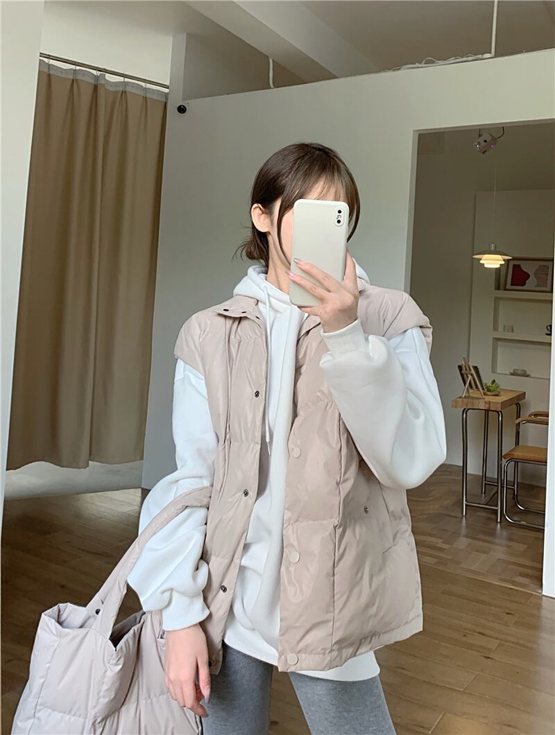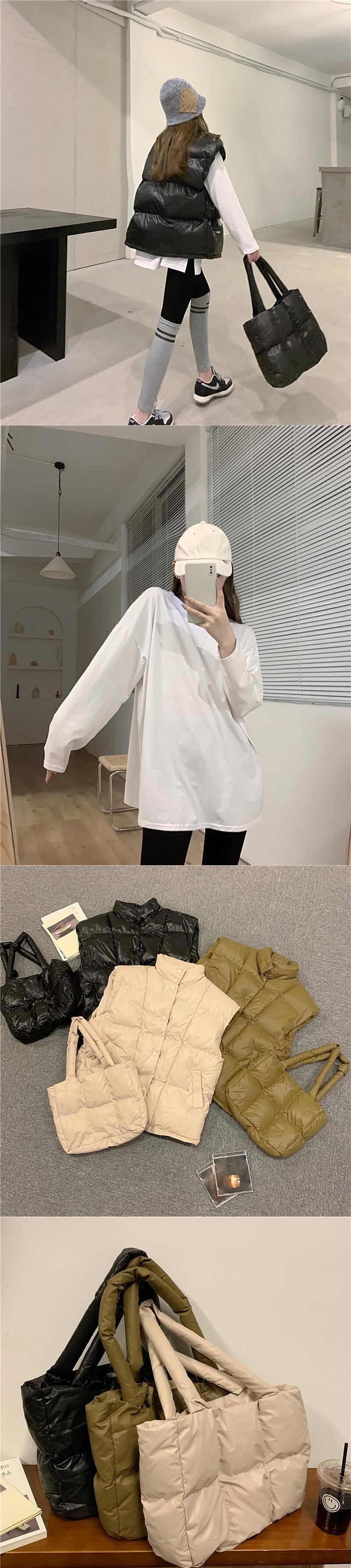 色:白いTシャツ,白いセーター,黒いセーター,バッグ付きベージュベスト,バッグ付きカーキグリーンベスト,バッグ付きブラックベスト