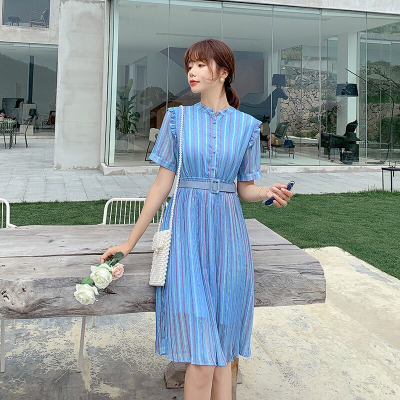 シフォンブルー 青ストライプドレス ワンピーススタイルウエストロング マキシ ロング丈 マキシ丈 マキシロング丈 スカート 女性 レディース フェミニン系80417356086 | nice import1 a5