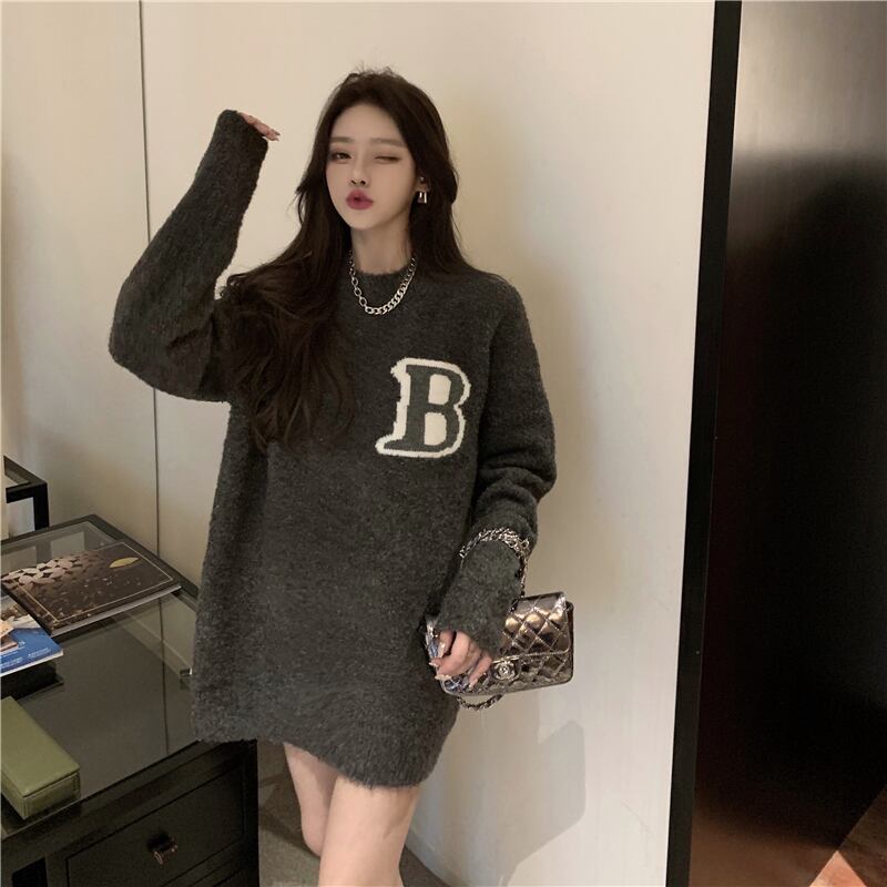 ラウンドネックプリントニット セーターレディースルーズスタンダードニットトップス ロング マキシロング丈 マキシ丈 レトロ 女性 レディース 可愛い系4160843939 | nice import1 a5