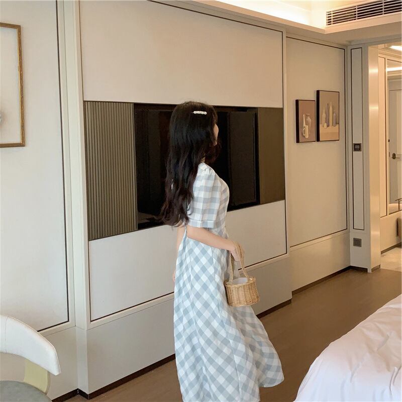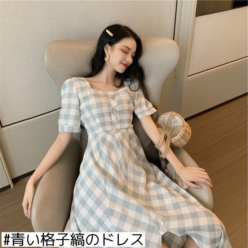 色:青い格子縞のドレス
