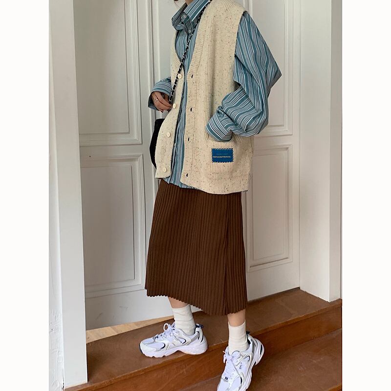 色:アプリコットベスト,グリーンベスト,青いシャツ,アプリコットシャツ,コーヒー色のスカート