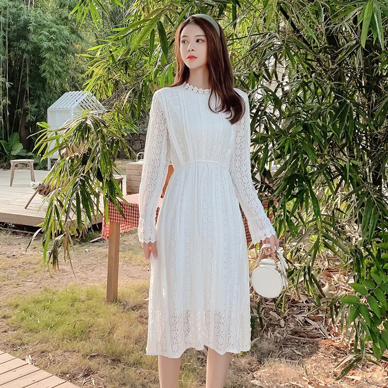 スタンダードホワイト 白レースドレス ワンピース レトロ 大きめサイズ エレガント 上品 フェミニン スカート 女性 レディース フェミニン系84628512374