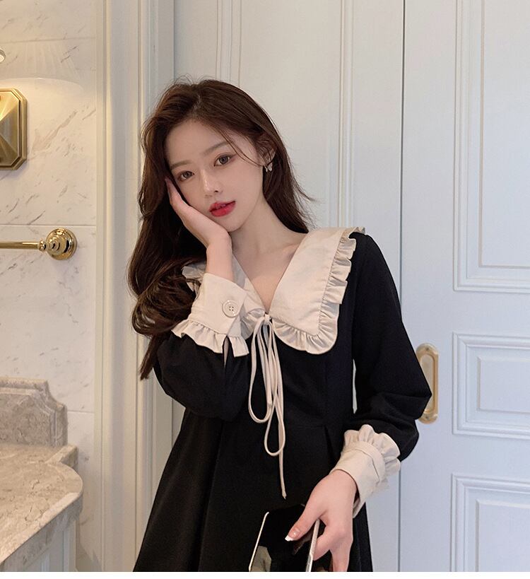 スタンダードスタイルドレス ワンピース薄手ブラック 黒 レトロ レース 女性 レディース フェミニン系7827884257