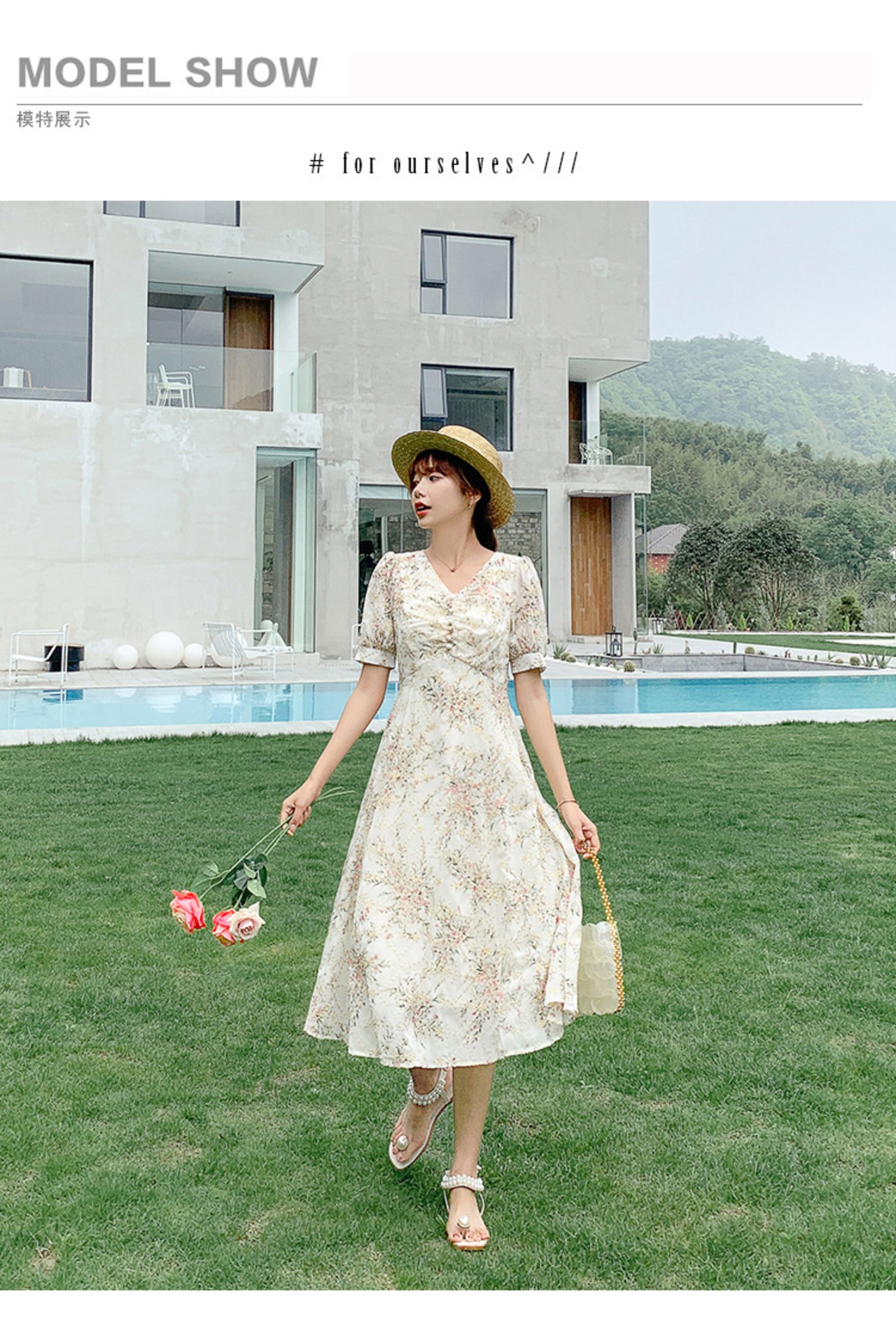 シフォンドレス ワンピースウエストスタイル花柄 お花 フラワー スカート 女性 レディース フェミニン系35935798984