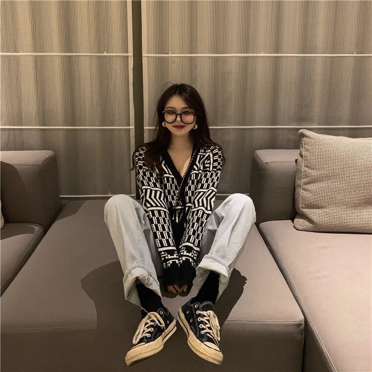 色:黒と白のニットコート