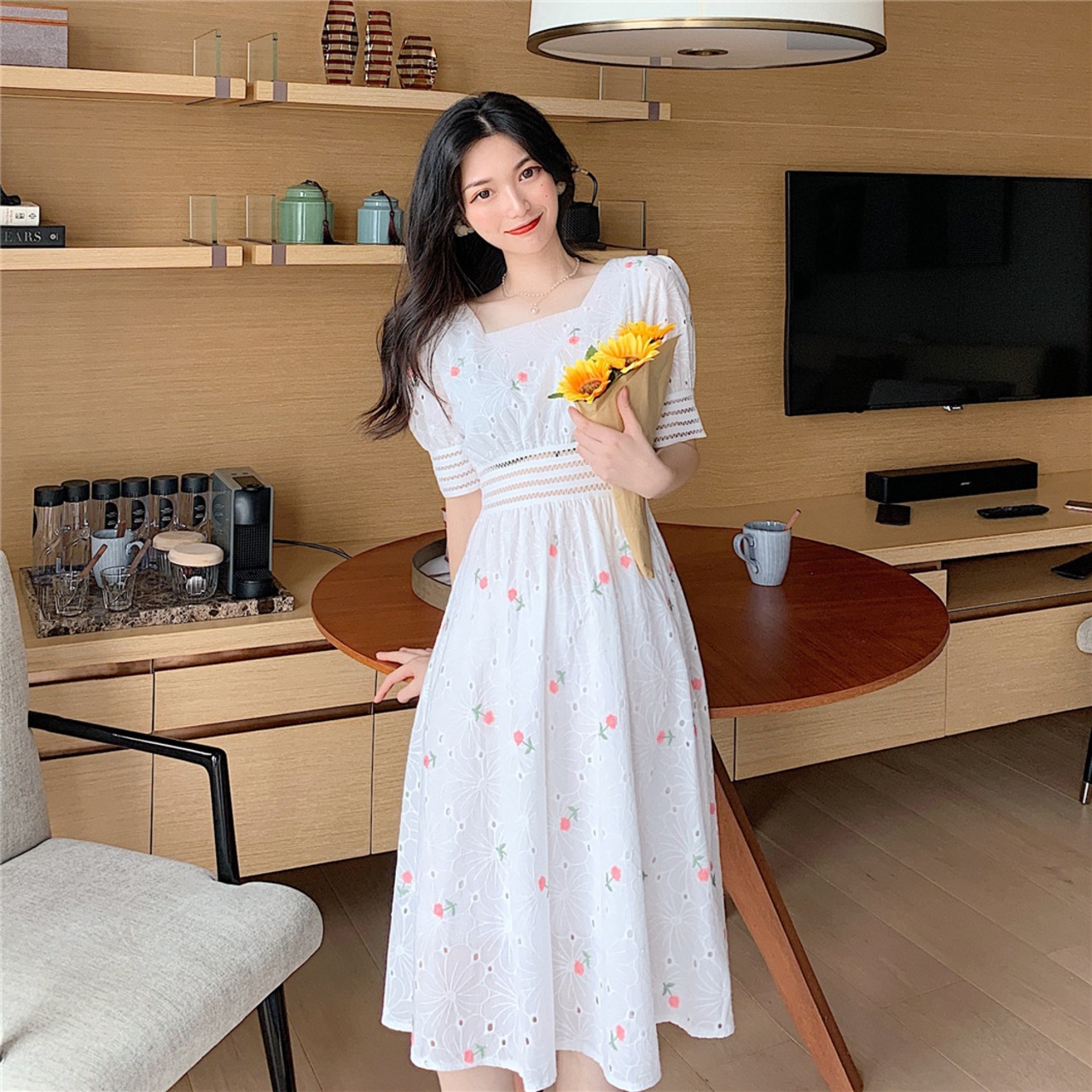 スタンダードスリーブ 袖カラー刺繍ウエストAライン ランタンスリーブ バルーンスリーブ ランタン袖 バルーン袖 レトロ スクウェア スクエア 女性 レディース フェミニン系78875738776
