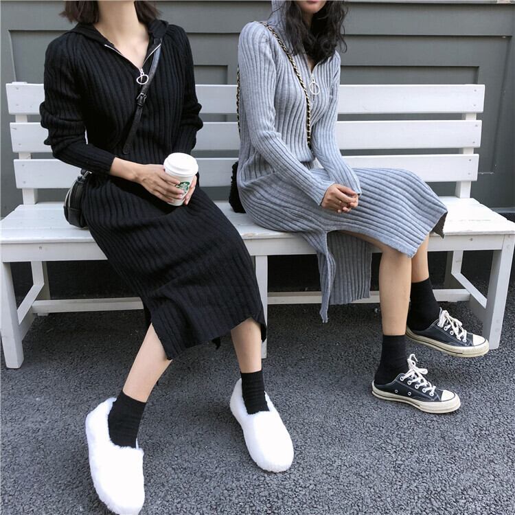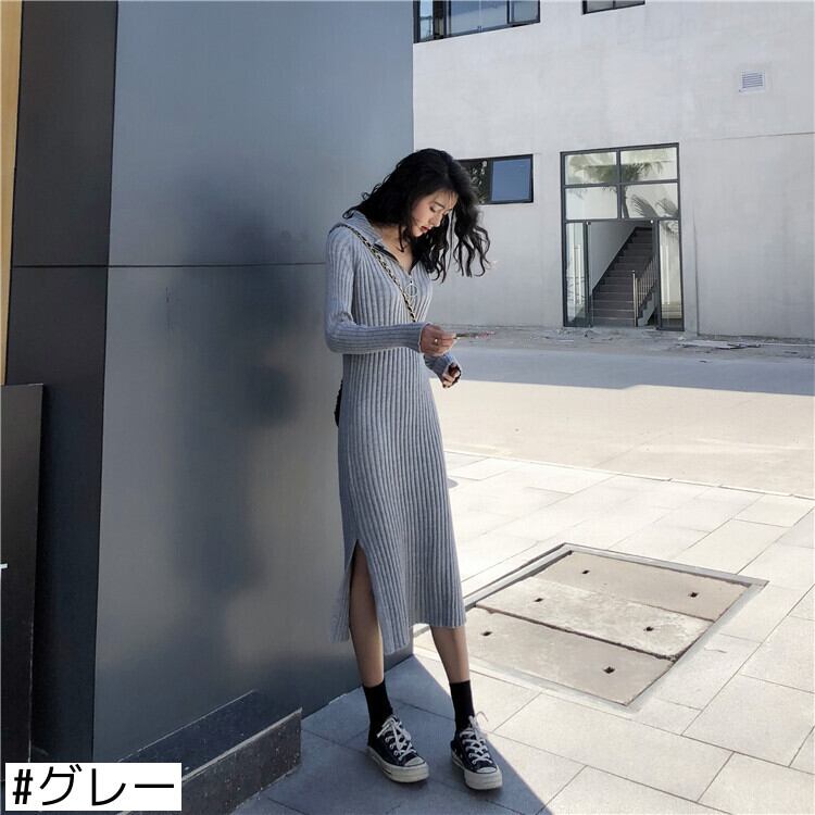 スカート フードロング マキシ ロング丈 マキシ丈ニット セータードレス ワンピース長袖 長そでスリーブ 袖ニット マキシロング丈 女性 レディース フェミニン系16246790713 | nice import1 a5