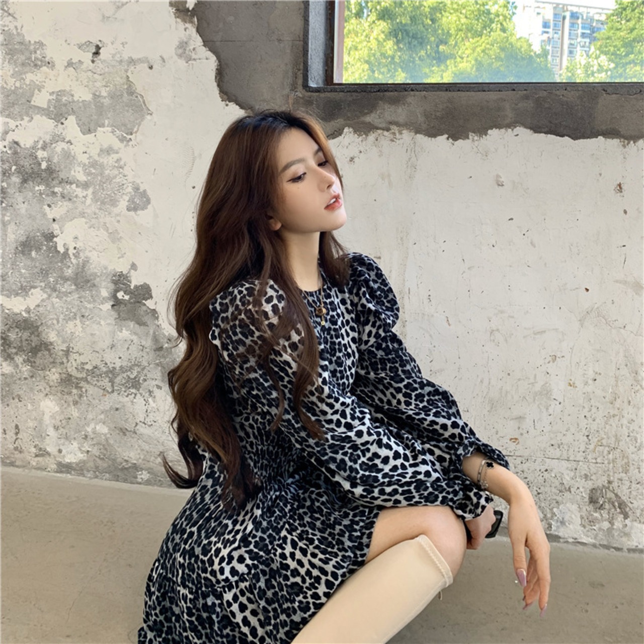 スカート ウエスト薄手ラウンドネックレオパードプリント柄ハイウエストAライン ハイウェスト ロング マキシロング丈 マキシ丈 女性 レディース フェミニン系2173038096