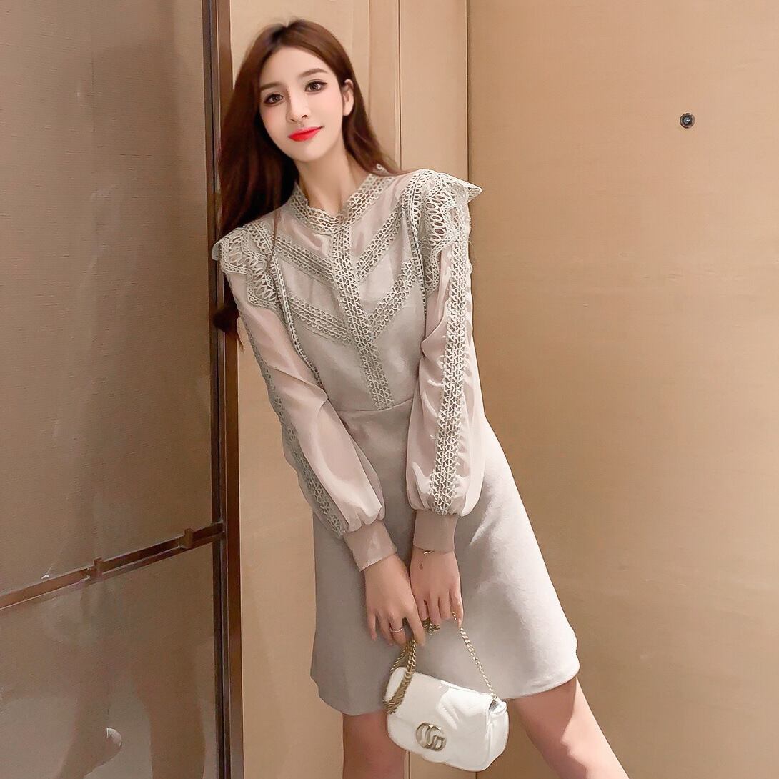ニット セーターウエストスリーブ 袖レースAラインニット ロング マキシロング丈 マキシ丈 ランタンスリーブ バルーンスリーブ ランタン袖 バルーン袖 女性 レディース フェミニン系99973601065 | nice import1 a5