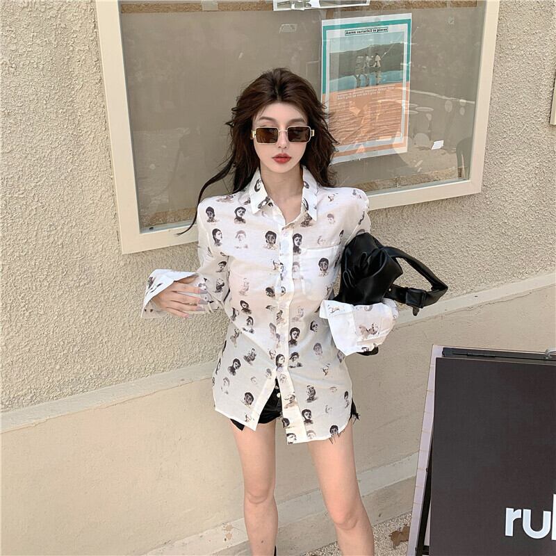 ホワイト 白シャツ ルーズ薄手ブラウス スタンダードストライプレディース ロング マキシロング丈 マキシ丈 レトロ トップス 女性 レディース 可愛い系53287324812 | nice import1 a5