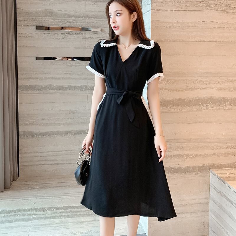 ブラック 黒Vネックドレス ワンピースウエスト薄手 女性 レディース フェミニン系43456479339