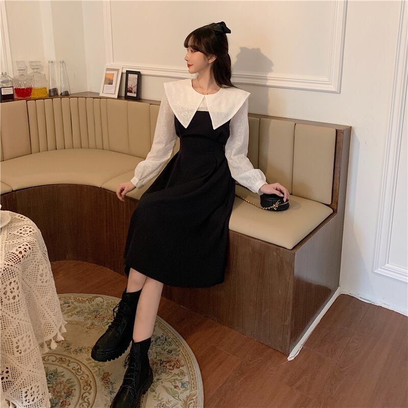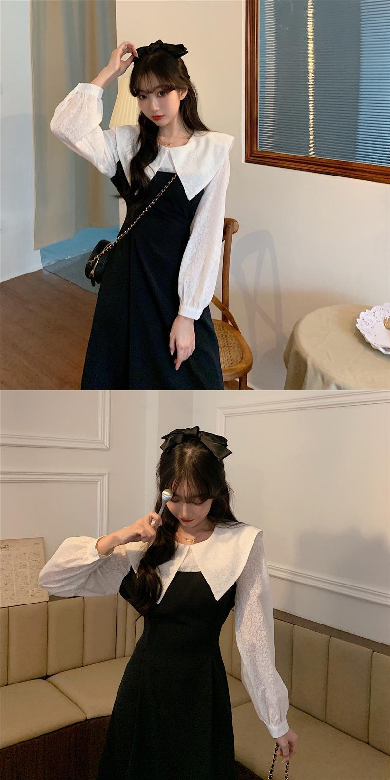 ツーピース薄手カラー長袖 長そでスリーブ 袖ドレス ワンピースブラック 黒 ロング マキシロング丈 マキシ丈 スカート 女性 レディース フェミニン系95188001093 | nice import1 a5