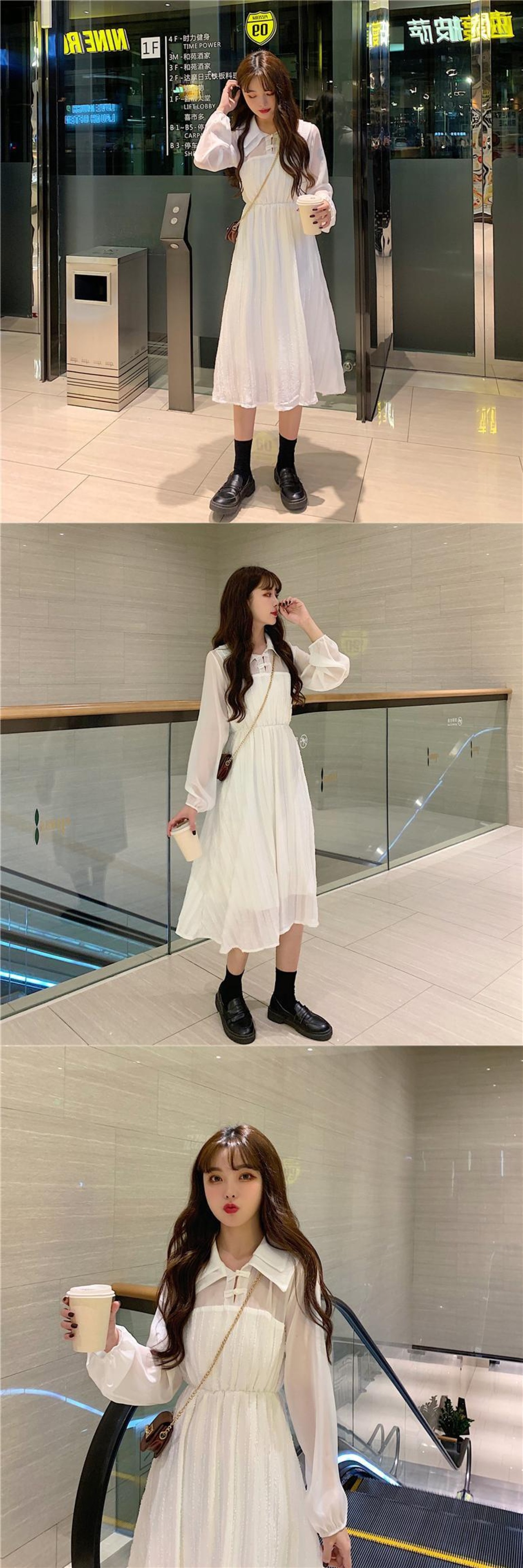スタンダードナチュラルボタンシフォン レトロ 女性 レディース フェミニン系69569725831