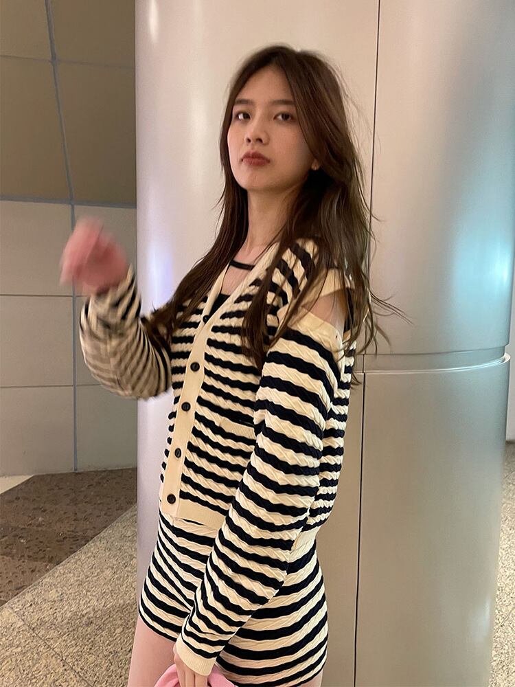 色:ストライプカーディガンスポット