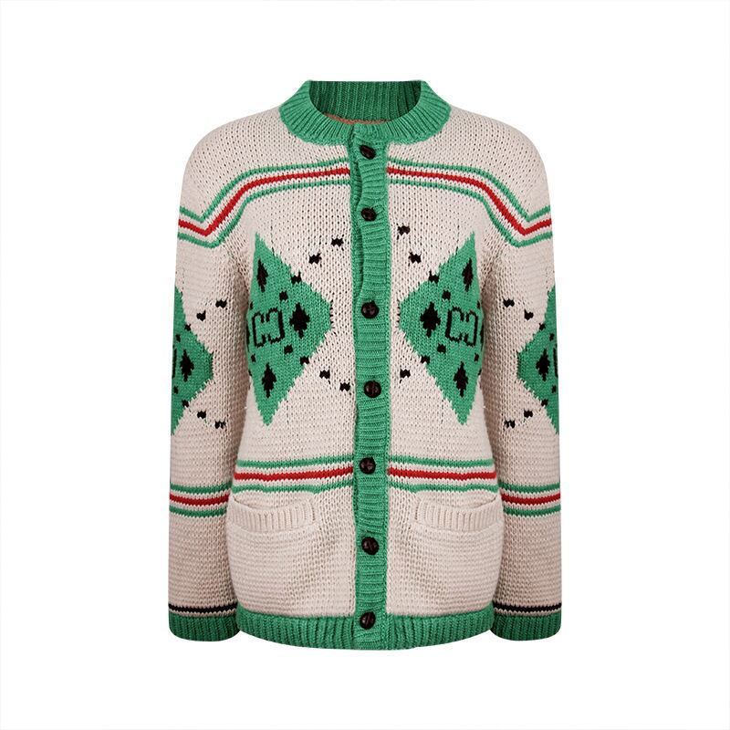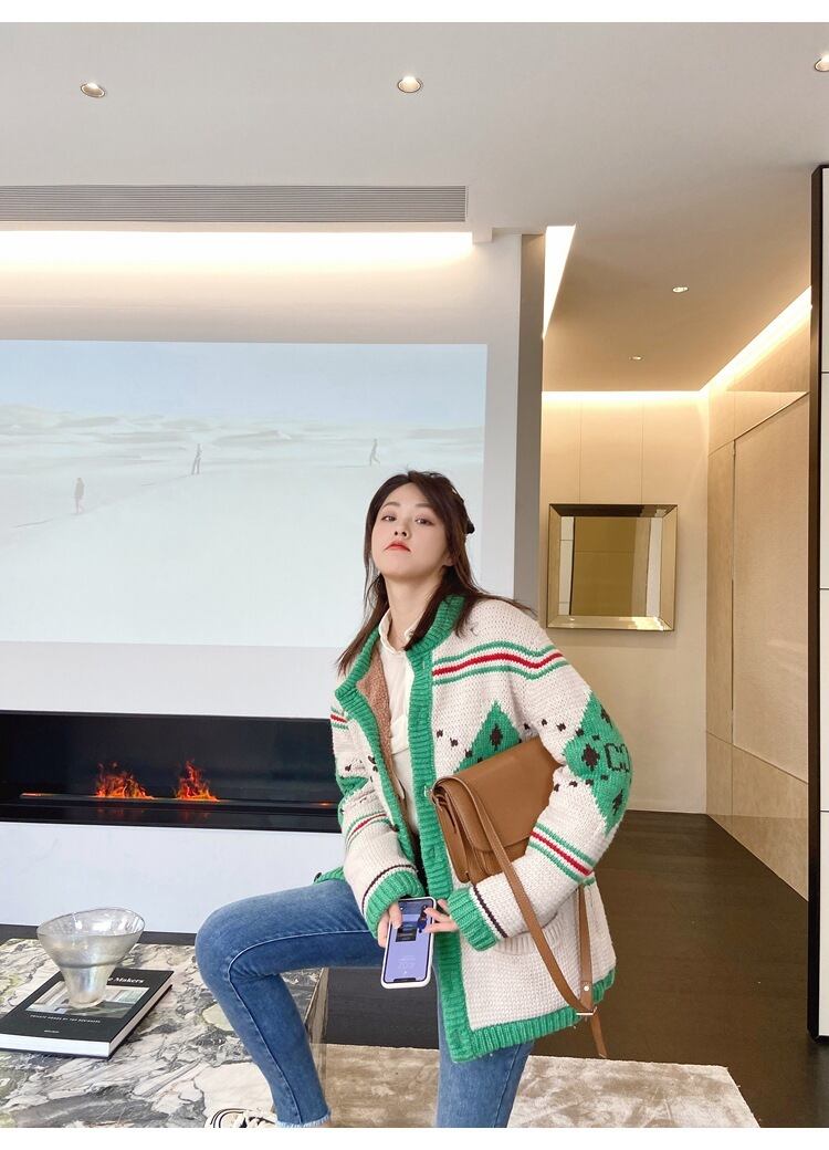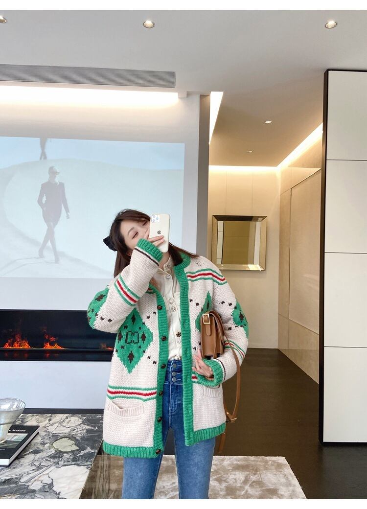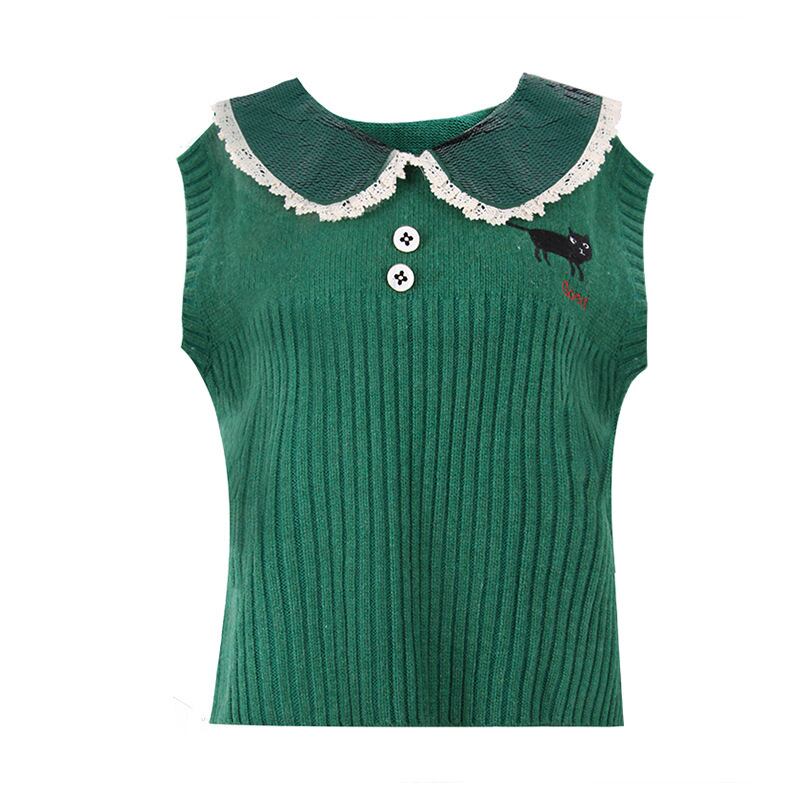 色:グリーンキティベストスポット,ストライプジャカードカーディガン-スポット