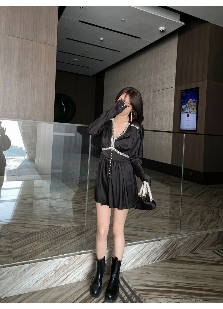 ドレス ワンピースダークナイトVネックサテンブラック 黒 女性 レディース カワイイ系63149686496