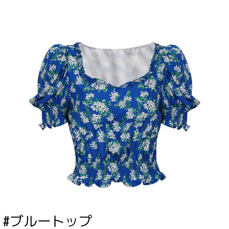 色:ブルートップ,ブルーのロングチューブトップスカート,ブルーのショートパフスリーブドレス