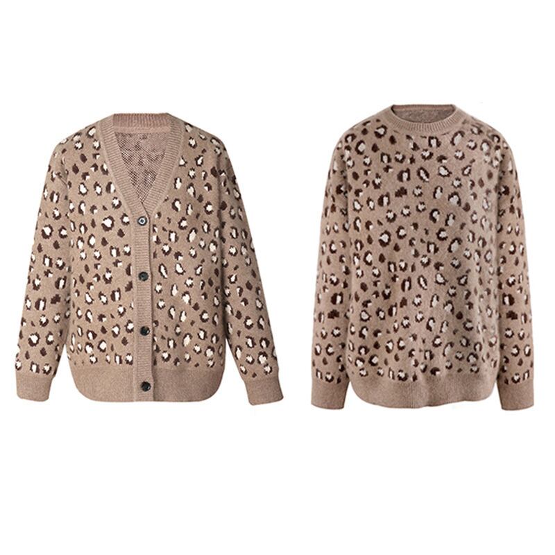 色:ピンクレオパードカーディガン-在庫あり,コーヒーヒョウ柄カーディガン-在庫あり,ピンクのヒョウの乗組員の首-在庫あり,モカレパードCrewNeck--在庫あり