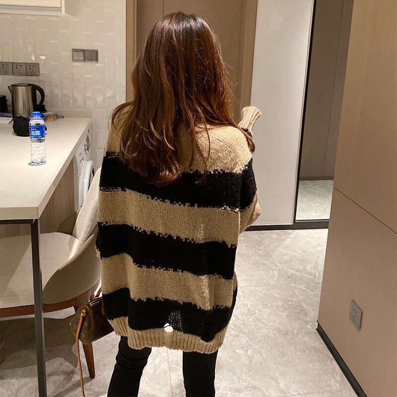 ブラック 黒ホワイトストライププルオーバー セーター ニット ルーズジャケット 女性 レディース カワイイ系28488568753