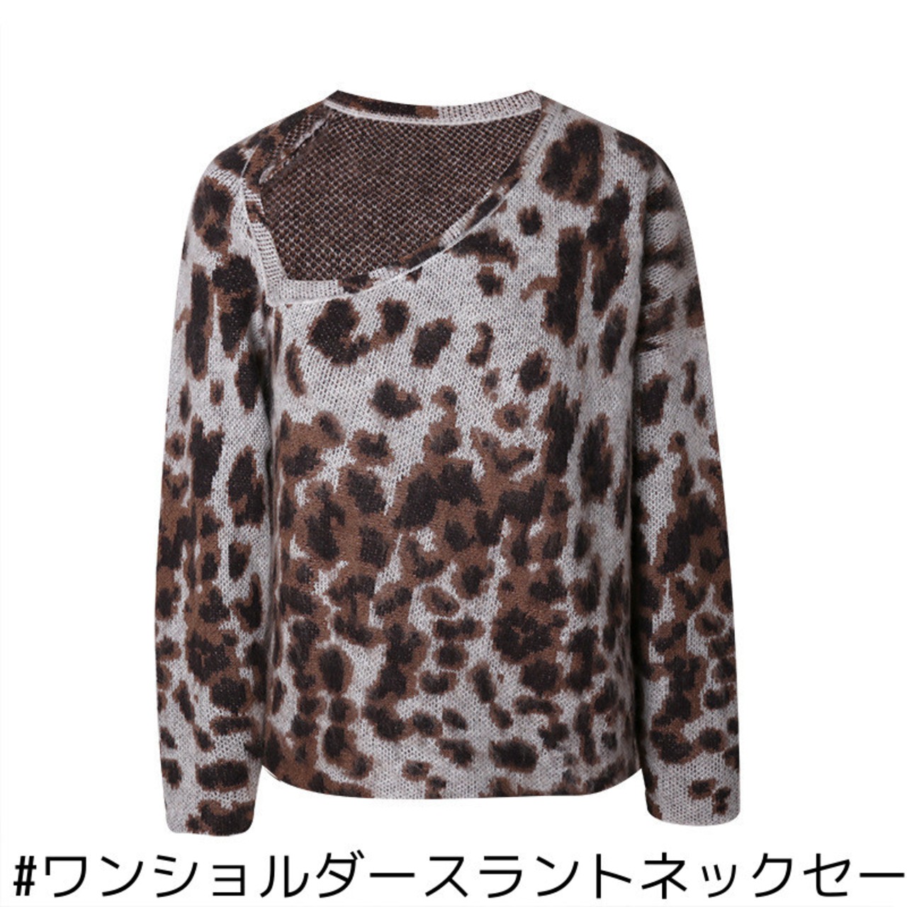 色:ヒョウ柄スリーブセーター-在庫あり,ワンショルダースラントネックセーター-在庫あり