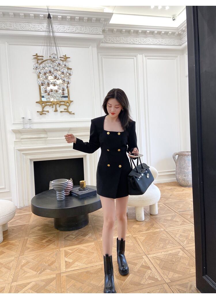 ドレス ワンピースカラーダブルブレストスカート スクウェア 女性 レディース カワイイ系77040464337