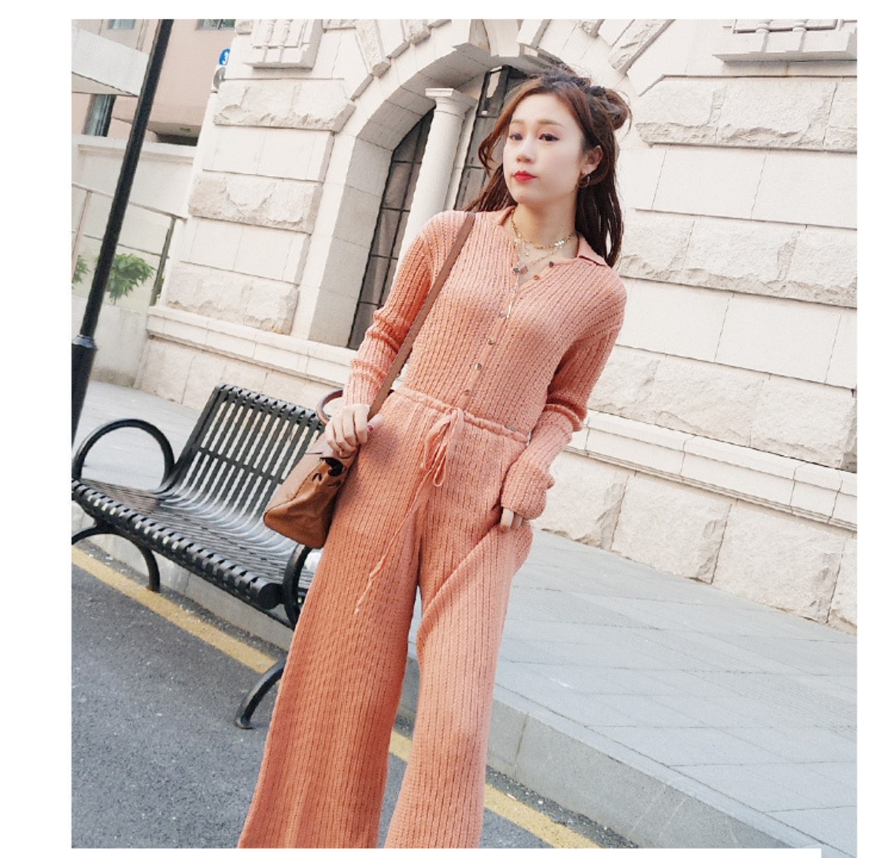 ニットルーズスリムドレス ワンピースワイドレッグハイウエストウエスト長袖スリーブジャンプスーツ オールインワン レディース ハイウェスト ロング ワイドパンツ 女性 レディース カワイイ系21266154614