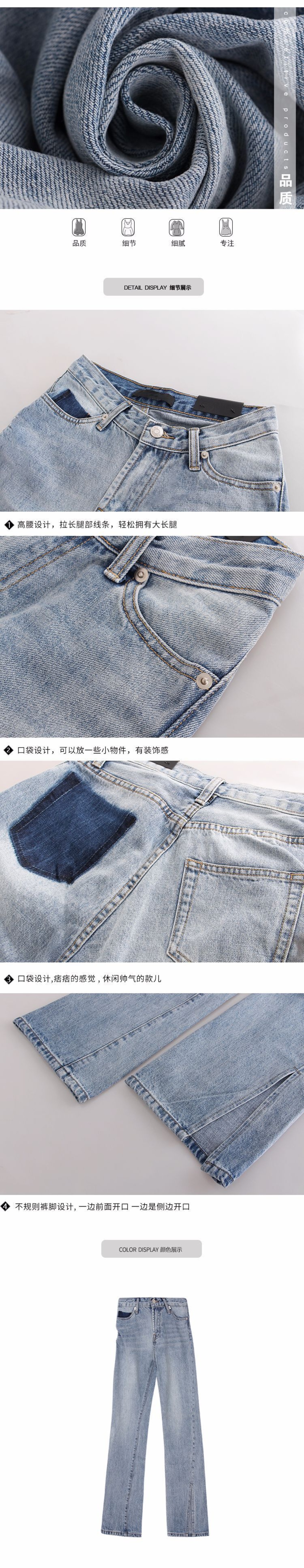 ジーンズ モダンウエストスリットワイドレッグパンツ ワイドパンツ 女性 レディース カワイイ系38993213870