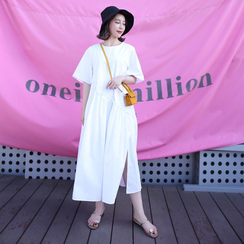 ドレス ワンピースルーズラウンドネックスカート プリーツシャツ ロング Oネック 女性 レディース カワイイ系65229422838
