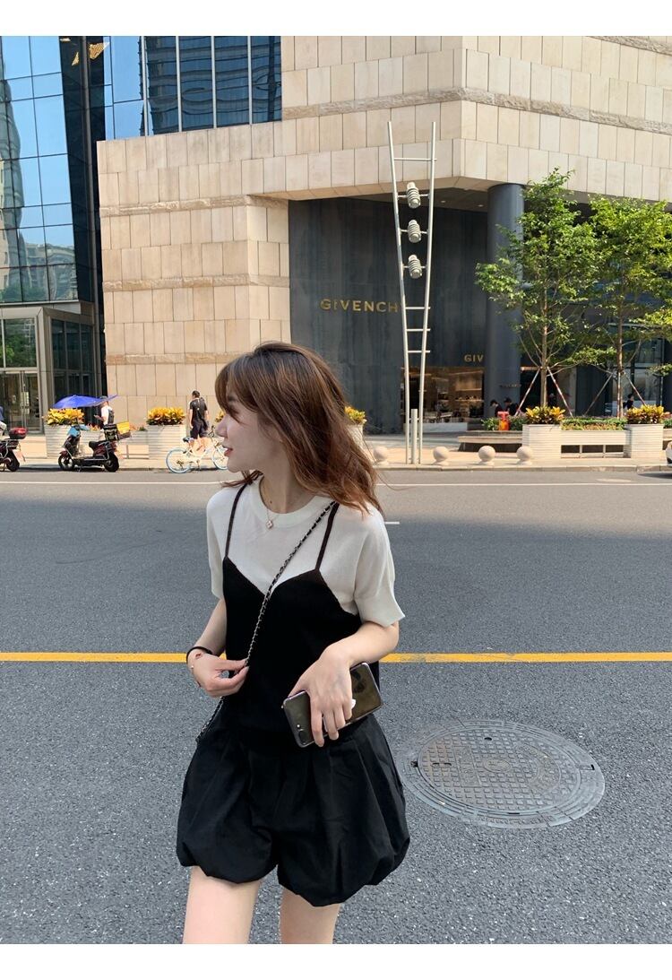 色:黒+白のカラーマッチングフェイクツーピース-スポット,キャラメル+ライトアプリコットフェイクツーピース-スポット