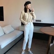 ジーンズ 薄手ハイウエストパンツ レッド 女性 レディース カワイイ系54435155595
