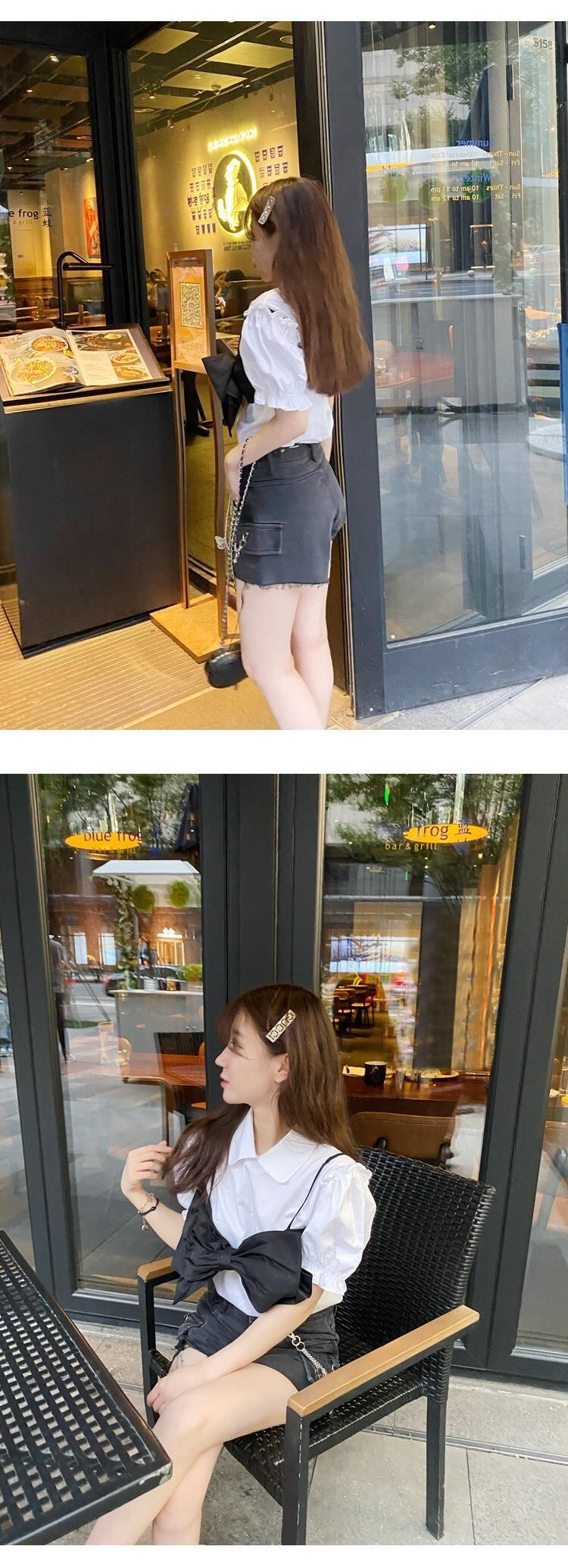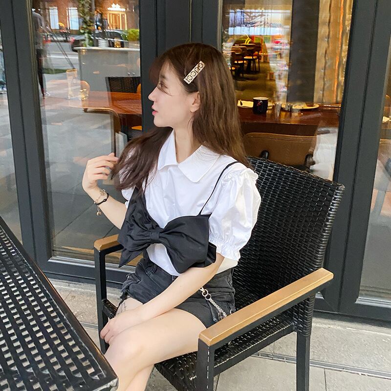 色:パフスリーブホワイトシャツ-在庫あり,蝶ネクタイ在庫