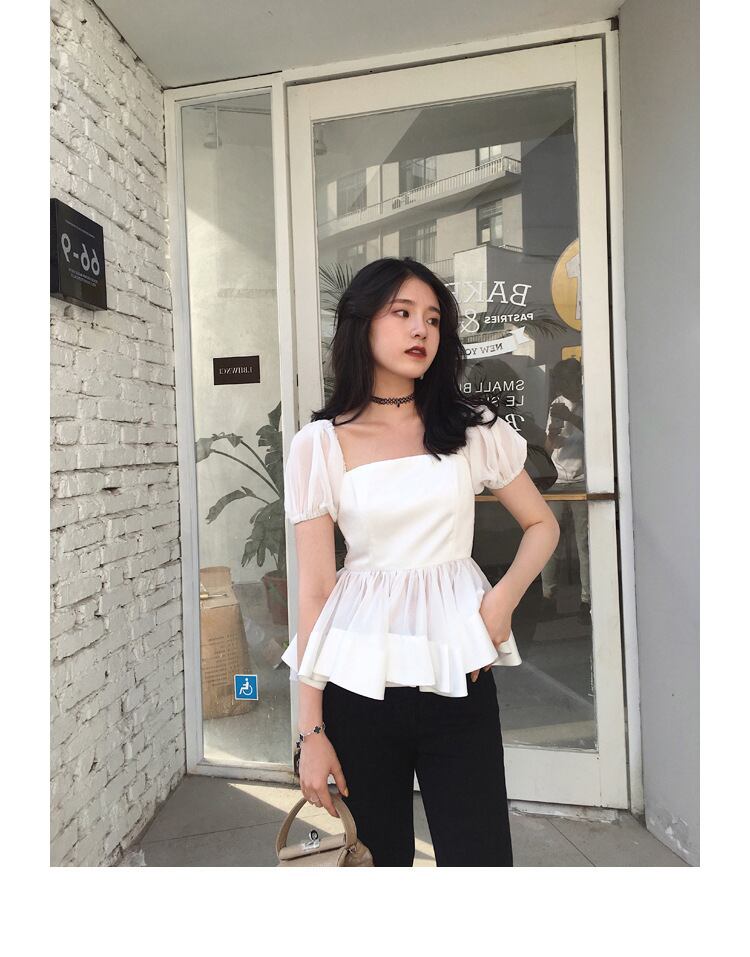スタイルスリーブ半袖ウエストメッシュスタンダードトップス レディース ショート レトロ ハーフスリーブ スクウェア ステッチ 女性 レディース カワイイ系8018813217 | nice import1 a5