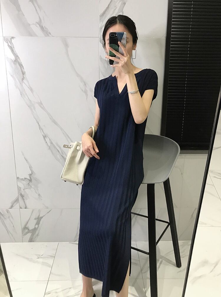 薄手Vネックストライプニットドレス ワンピース 女性 レディース カワイイ系1407004401