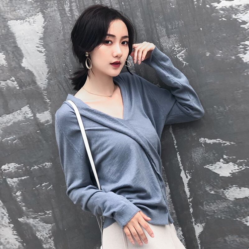 Vネックプルオーバー セーター 薄手ルーズシャツ ロング 女性 レディース カワイイ系37059894807