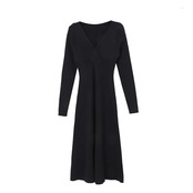 Vネックレッドニットドレス ワンピースロングスカート 女性 レディース カワイイ系16304776290
