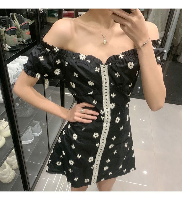ドレス ワンピースハイウエストウエストスリムスカート スリーブフローラル ハイウェスト レッド ランタンスリーブ 刺繍 花柄 お花 フラワー フラワーデザイン 女性 レディース カワイイ系51152942671 | nice import1 a5