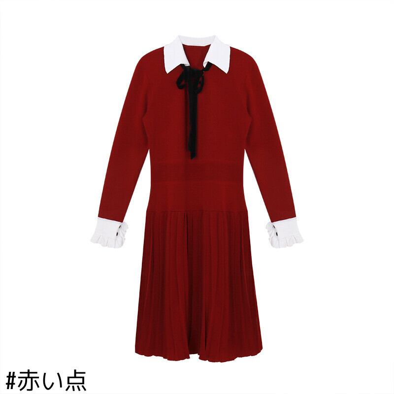 ドレス ワンピーススタイルブラック 黒レッドニットスカート ロング レース レースアップ 女性 レディース カワイイ系93012628584