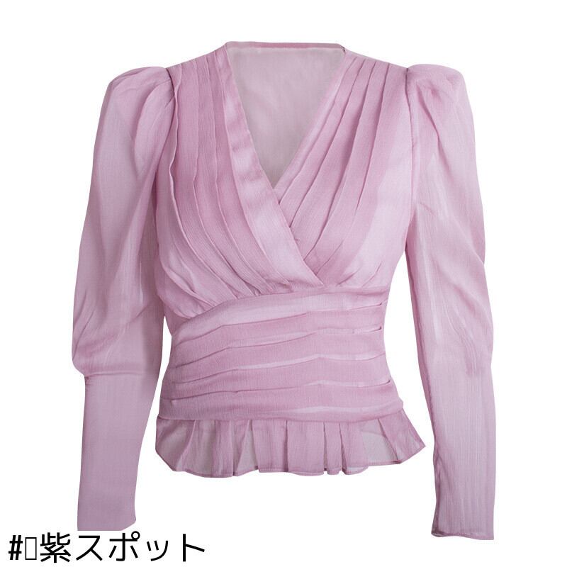 Vネックシフォンウエストスリーブ 女性 レディース カワイイ系21010422423