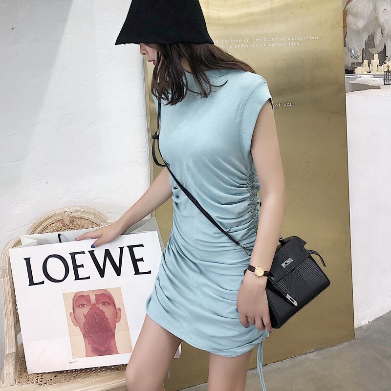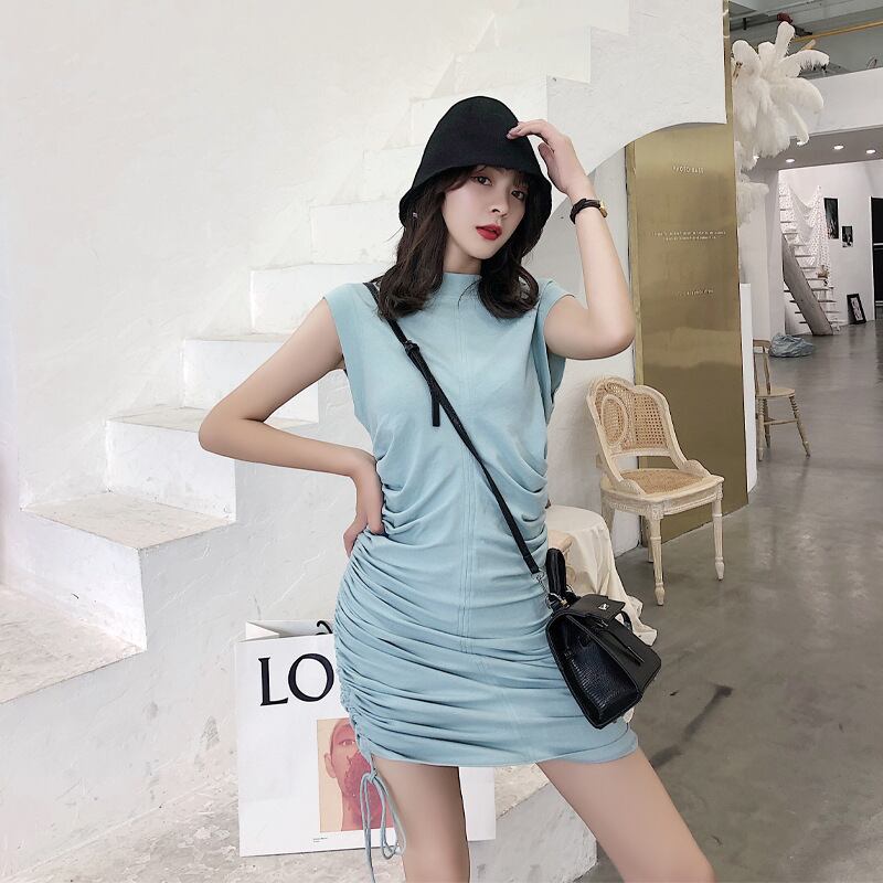 グリーンノースリーブプリーツサイドギャザードレス ワンピースウエストスカート フェミニン 大人ガーリー 大人可愛い 大人かわいい キュート 女性 レディース カワイイ系13035742590 | nice import1 a5