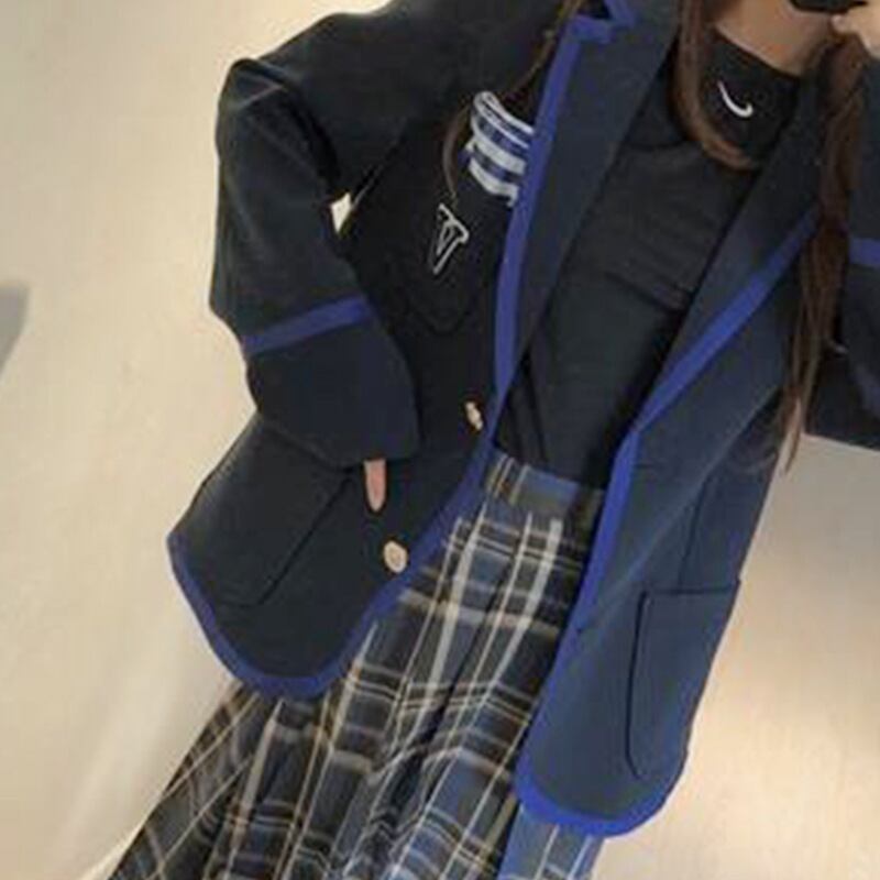 色:海軍スーツスポット,チェック柄スカート在庫あり