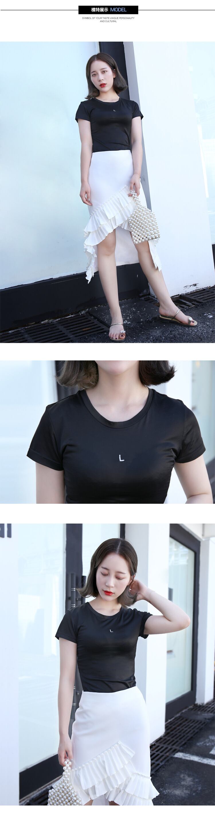 ブラウス スリムシルバー刺繍ソリッド カラーTシャツ シルク ソリッドカラー 銀 女性 レディース カワイイ系26606504328