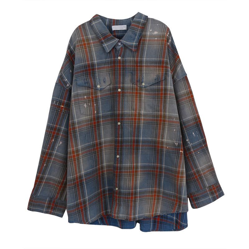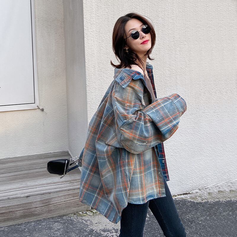 シャツ スタイル格子柄ルーズカジュアルジャケット ロング 女性 レディース カワイイ系56089271313