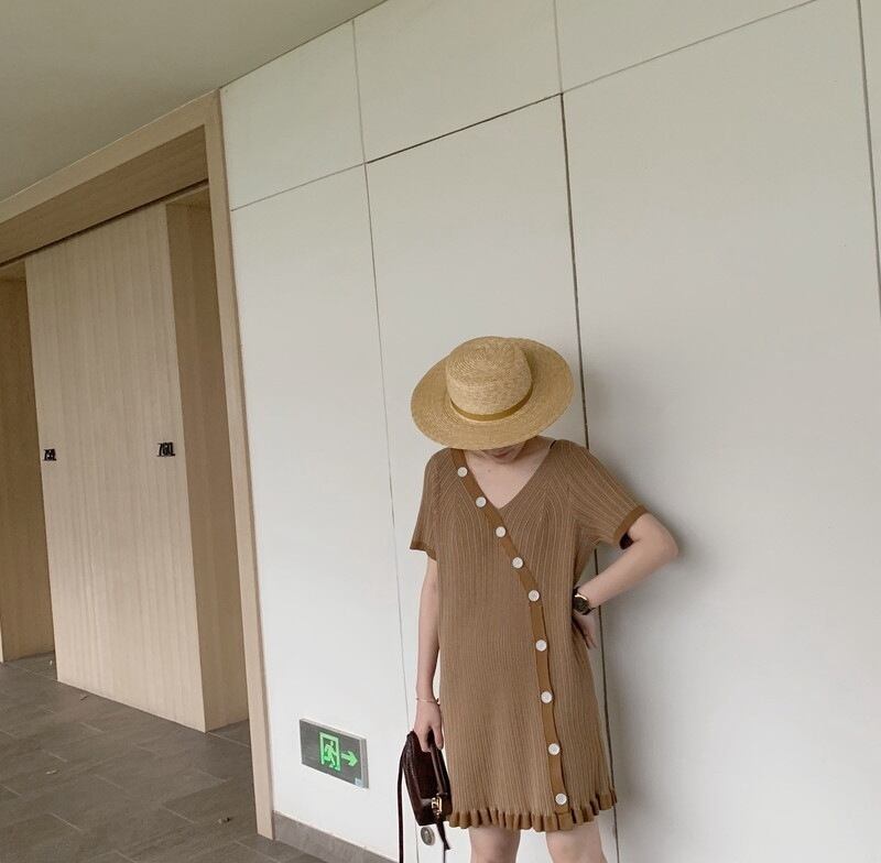 スカート スタンダードニットVネックドレス ワンピース レトロ シルキー 女性 レディース カワイイ系81014021321
