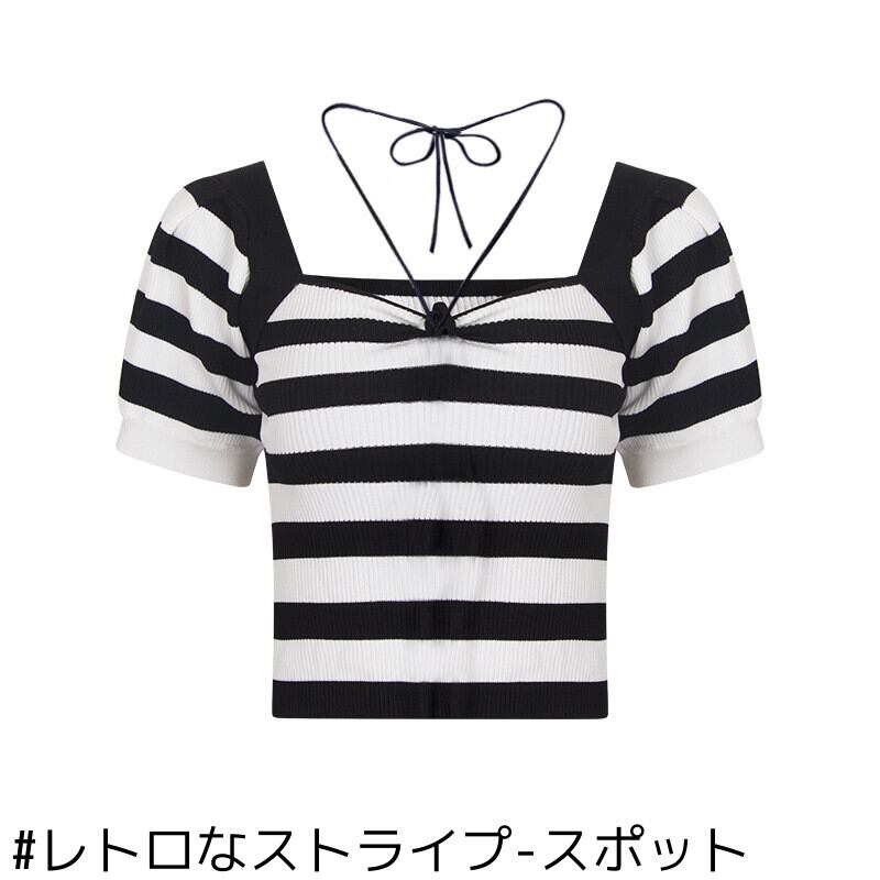 スリーブニットセーター ホルターストライプクロップドトップス レディース フェミニン 大人ガーリー 大人可愛い 大人かわいい キュート スクウェア 女性 レディース カワイイ系65235656691 | nice import1 a5