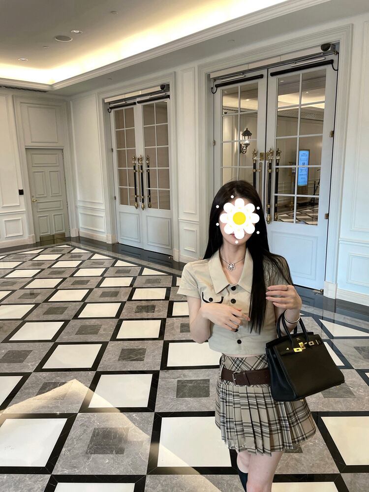 色:ストレッチスリムシャツ,茶色の賢いベルトスカート